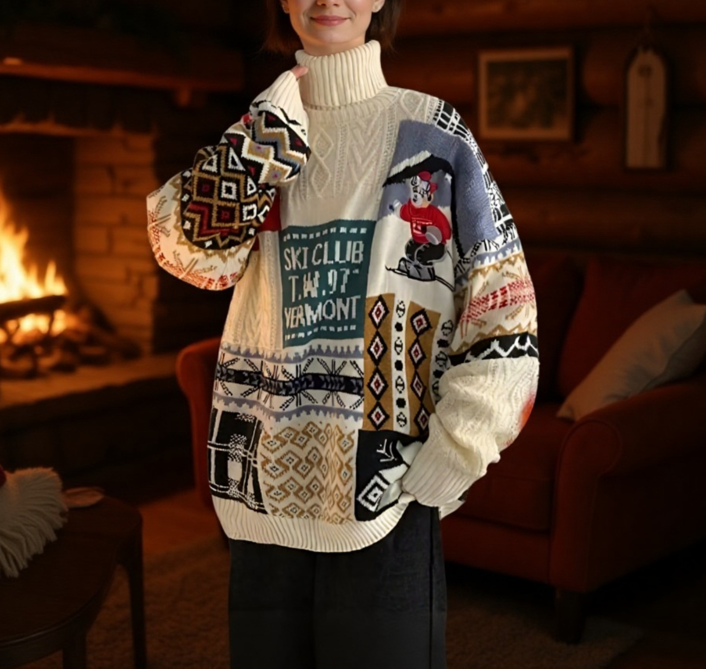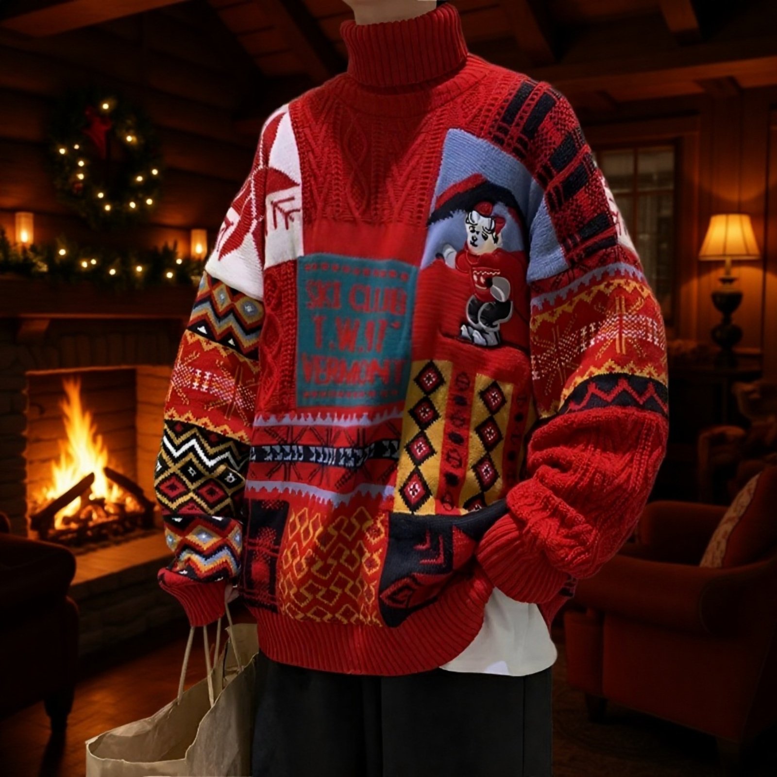 冬用クリスマスカップルセーター 高領 アメリカンスタイル 厚手ニット ゆったり 男女ペア