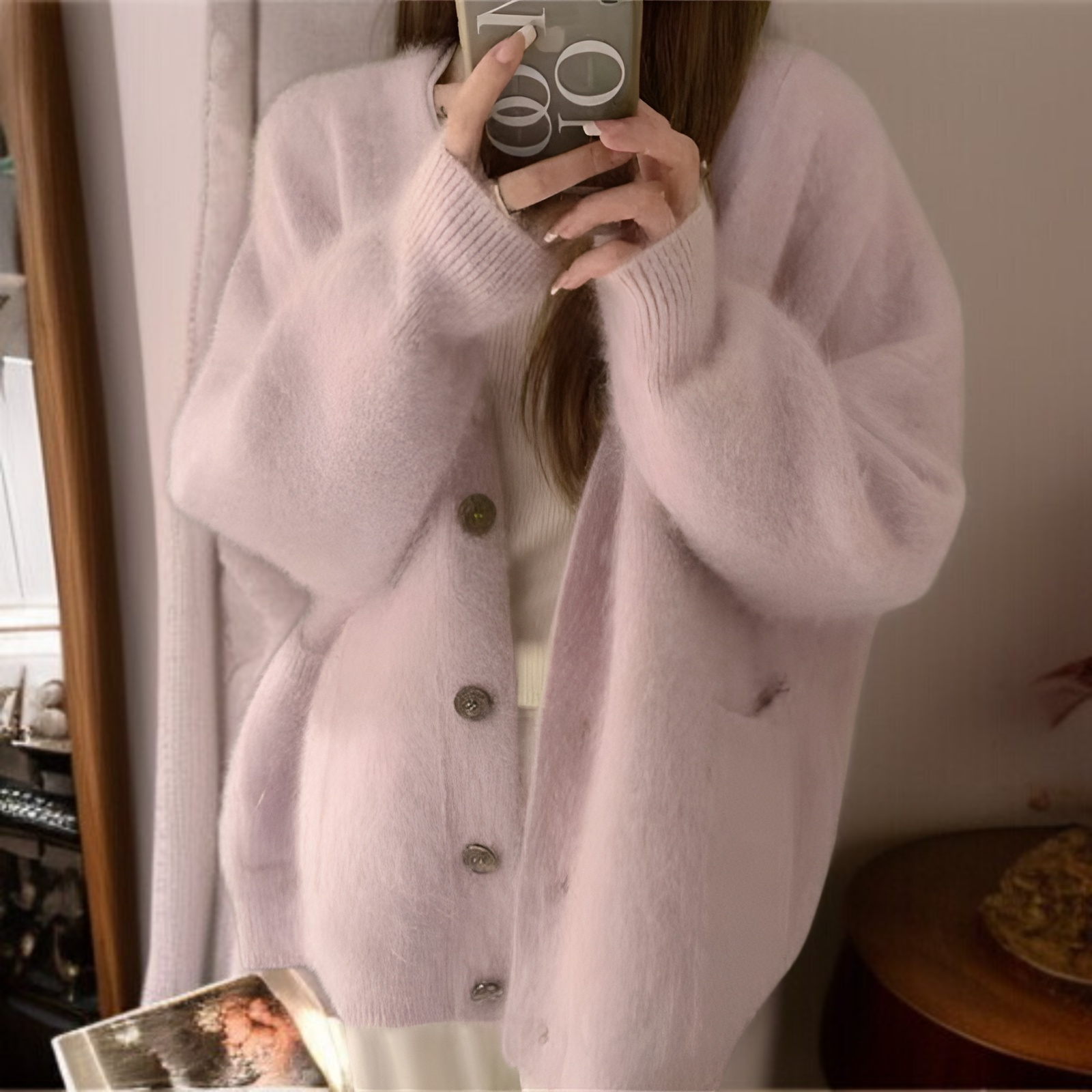 ファッショナブルで柔らかく着心地の良いレディースセーターカーディガン、新しい秋冬スタイル、ゆったりとしたゆったりとした、優しいフェイクミンクニットカーディガン。