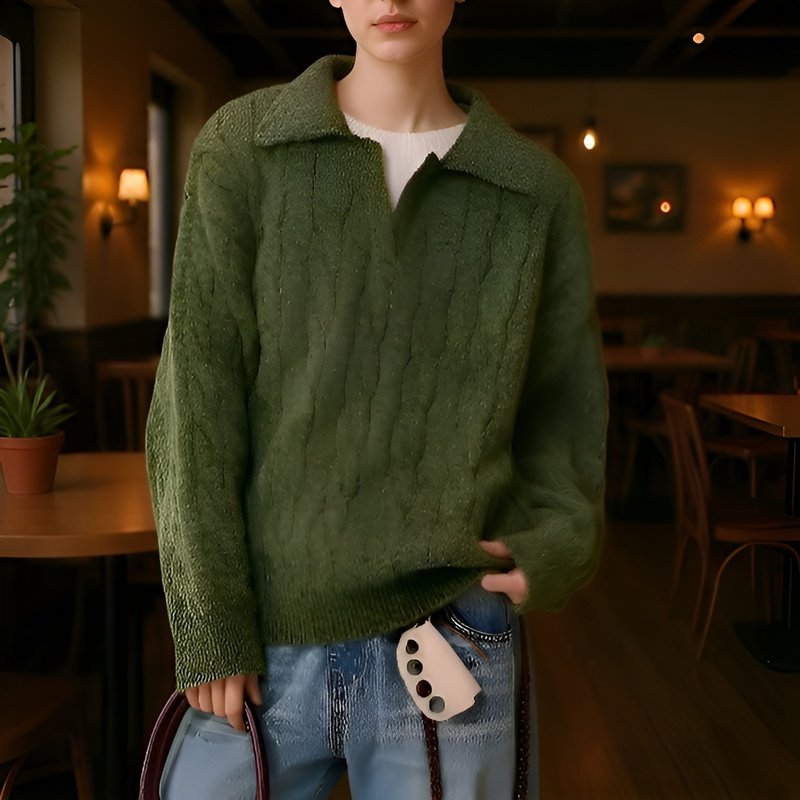 ● Vネックが顔周りをすっきりと見せ、どんなインナーとも合わせやすい万能アイテム。デイリー使いに最適です。